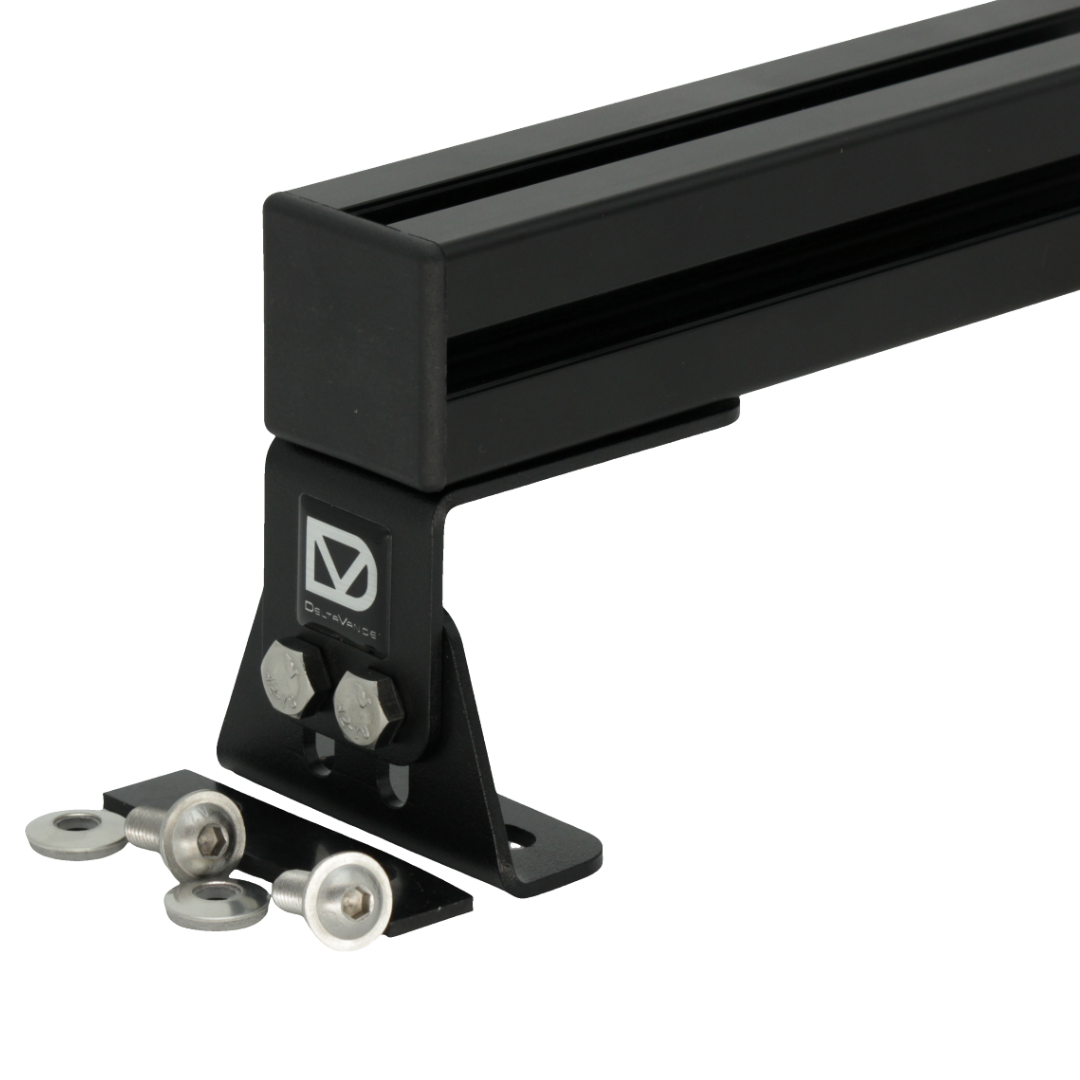 Lieferumfang: 1 Querträger bestehend aus: 2x DeltaVan Dachwinkel, 1x Aluprofil schwarz eloxiert inkl. Endkappen, Schrauben und Nutensteinen